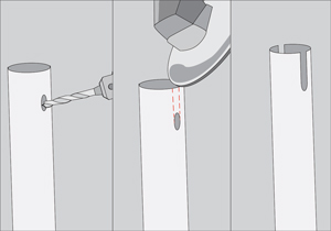 Hacer 2 perforaciones con broca de 10 mm para poder encajar el sistema de rotación.