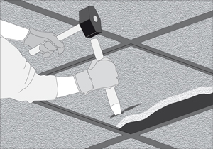 Al sacar el pastelón, ya sea con el esmeril angular y el cincel es indispensable protegerse la cara con una máscara o gafas de seguridad.