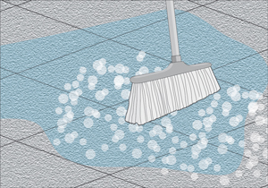 - Preparar el detergente para piedra y cemento según las instrucciones del fabricante, esparcir en el suelo y refregar con un escobillón.