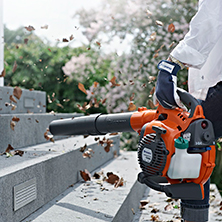 • Para terrenos grandes es recomendable el uso de sopladores a combustión, tienen mayor potencia y son autónomos, permitiendo desplazamientos sin restricciones.