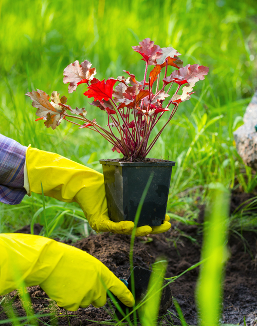 Esta opción, al permitir colocar cada ejemplar en su recipiente original, evita el riesgo de que la planta no se arraigue. Al mismo tiempo tiene la ventaja de retirar fácilmente las plantas marchitas y reemplazarlas por ejemplares frescos.