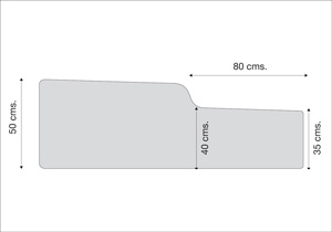 La cubierta tiene curvas más notorias, para eso un extremo medirá 35 cms y se irá agrandando hasta llegar a los 80 cms, donde el ancho se marca a 40 cms.
