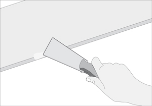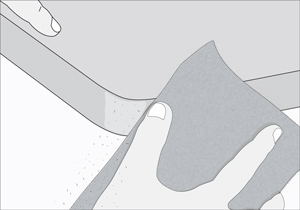 Con espátula aplicar masilla de retape en todos los cantos, no es necesario en el resto de la superficie. Sacar los excesos y dejar secar. Una vez seca la masilla, lijar para emparejar.