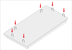 Calculando la medida del colchón atornillar 2 pernos U en cada esquina del colchón para que no se mueva.