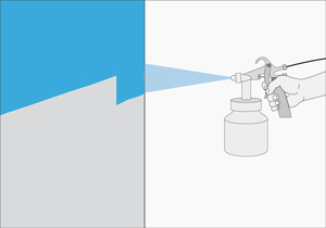 Esta es una pistola que tiene compresor incluido, ya que pulveriza la pintura a través de un ventilador muy potente. Se aplica con mascarilla y gafas, en un lugar abierto, ya que el rocío de la pintura mancha bastante. Se da en total 4 manos y se va pasando la pistola en forma de abanico, alternando entre trazos horizontales y verticales.