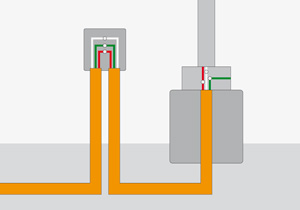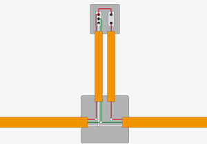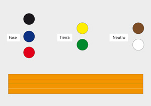 Cable Fase (rojo, negro o azul): a la caja de distribución, desde la caja hasta el terminal del enchufe, desde ese mismo terminal a puente hasta un terminal interruptor, desde el terminal del interruptor, hasta la caja de distribución, y desde la caja al foco o la caja siguiente. Cable Neutro (blanco o café): a la caja de distribución y desde ahí al foco o hacia la caja siguiente. Conexión al mismo cable en la caja y hacia el terminal del enchufe. Cable Tierra (Verde o amarillo): a la caja de distribución y hacia el foco o hacia la caja siguiente. Conexión al mismo cable en la caja y hacia el terminal central del enchufe.