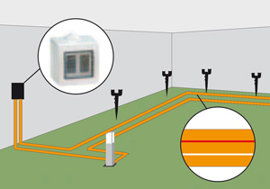 Lo más típico es que los cables lleguen a una caja de distribución en un conduit de PVC enterrado en el suelo o montado en la pared. Desde esta caja de distribución, a través de otro conduit, los cables suben a una caja de intemperie ubicada a una altura cómoda para poner un interruptor. La caja de intemperie puede alojar interruptores y también enchufes, dependiendo de los requerimientos de los focos y del proyecto total. Desde la caja de intemperie después vuelven a bajar los cables para seguir hacia el foco o la caja siguiente.