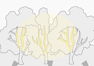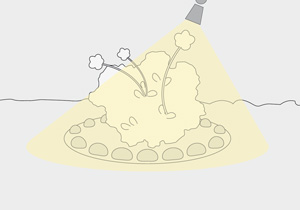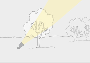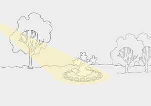 Es más apropiada para jardines pequeños. Es similar a la luz concentrada, ya que realza aspectos interesantes del jardín, como por ejemplo: una planta especial, pero lo hace con un brillo suave. Utilizar luces de bajo voltaje y eficientes en el uso de energía.