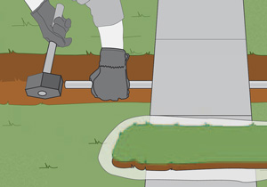 Apoyar sobre una manga de plástico la franja de pasto que va sacando, de manera que una vez terminada la operación, pueda volver a colocarla en la misma posición. Para pasar bajo una franja o camino de concreto, martillar por debajo el tubo de PVC hasta llegar al otro lado.
