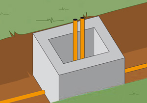 Para cajas de distribución o para base de focos, se pueden utilizar bloques de concreto de 20x20x20 cms. Apoyar en el suelo a la altura deseada. Subir el conduit por el centro del bloque
