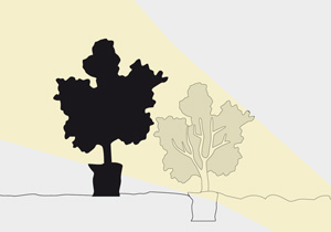 Resaltar la silueta de un objeto contra una pared iluminada crea un efecto de gran dramatismo. Este efecto se puede apreciar en la naturaleza cuando usted ve los contornos de un árbol recortados de la puesta de sol. La luz debe ser puesta detrás del objeto. Es importante que, tanto la fuente de luz como los accesorios, no queden a la vista.