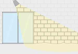 Usar esta forma de iluminación para resaltar una textura interesante, ya sea de un muro, como por ejemplo: piedra o ladrillo, o para iluminar un árbol, mostrando la textura de su corteza. Para crear este efecto, instalar la lámpara en forma paralela al muro, separada sólo unos centímetros.