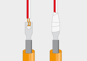 Una forma muy segura para conectar los cables eléctricos es con terminales que permiten enrollar la punta de los cables ordenadamente para que hagan la conexión. Pero como estarán en el exterior, es necesario aislarlos, una vez conectados, con cinta eléctrica de goma autofundente.