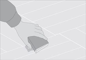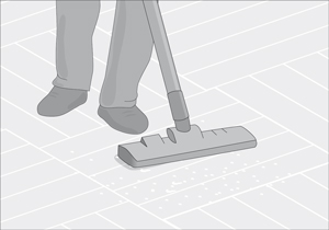 Después que la primera capa de vitrificado está seca se debe pasar con la mano una lija suave por aquellos lugares donde hayan quedado pegadas pelusas o polvo. Es un procedimiento necesario para ir mejorando la terminación del vitrificado. • Limpiar con aspiradora y un paño húmedo