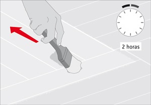 Con un brocha ancha comenzamos a vitrificar el piso, siguiendo la dirección de las tablas o de las palmetas de parquet. Dejar secar por 2 horas.