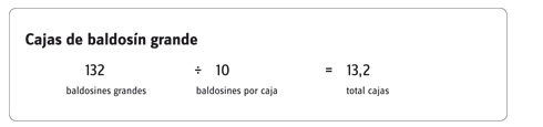 Necesitamos, entonces, comprar 14 cajas del baldosín grande y 53 cajas del baldosín pequeño.
