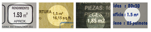 Ejemplos de la indicación del rendimiento en distintas cajas de cerámica.