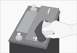 - Si no se ven, limpiar la batería con un paño hasta que aparezcan. Si esto no funciona, tratar con agua destilada sobre los terminales.