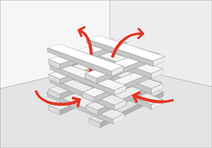 - Las uniones de cruz entre hileras adyacentes deben ser colocadas a capricho tal como se muestra en la figura.