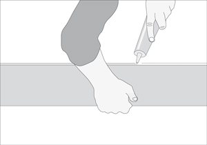 - Sostener el panel firmemente contra su cuerpo y aplicar una capa de pegamento en la ranura por la parte larga y la corta.