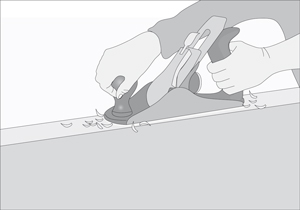 Si no lo hace, desmontar la puerta de las bisagras, cepillar el borde inferior y volver a montar y revisar. Si hay una unión justo bajo la puerta, recordar calcular la altura de la cubrejuntas al momento de rebajar la puerta.