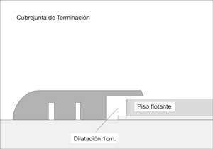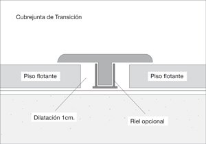- Usar está cubrejunta cuando haya una diferencia de altura entre el piso flotante y un piso adyacente que no supere 1 cm.
