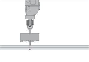 - Taladrar un agujero con una sierra de copa o con una paleta del diámetro de la cañería más 1 cm.