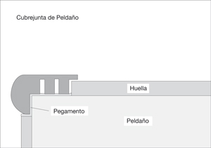 - Usar este perfil en el borde frontal del peldaño para cubrir el canto de frente de la huella.