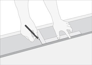 - Presentar los paneles y chequear el tamaño del corte en el extremo opuesto, tal como se explicó en el punto 1. Si el último panel de la corrida mide menos de 30 cm. de largo, cortar un poco el primer panel.
