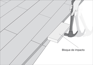 NOTA: Si no tiene un bloque especial, usar un panel de piso de 10 cm. de ancho como bloque de impacto.