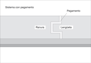 - El típico machihembrado requiere ser pegado y martillado suavemente en su lugar.