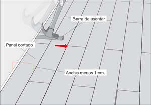 - Al cortar, usar un ángulo metálico (barra de asentar) especial que al ser martillado pondrá el panel en su lugar.