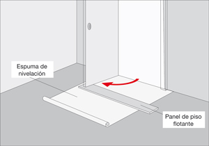 - Para chequear si esto es necesario poner un panel de piso sobre la espuma bajo la puerta. Verificar que la puerta cierre y abrir libremente.
