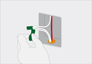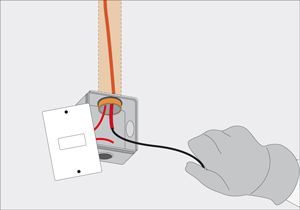 - Meter la laucha, que todavía tiene el cable rojo amarrado, en el tubo conduit que une la caja de distribución con el interruptor existente.