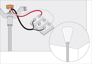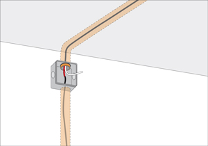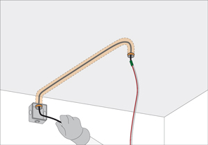 - Uno de los extremos curvados meterlo en la caja de distribución, y el otro en el agujero de la lámpara.