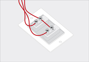 - Para dar electricidad a la nueva lámpara hay que hacer un puente entre los interruptores, esto se hace con un trozo de cable rojo.