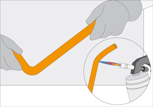 - Ambos extremos de ese conduit deben tener una curva para que se puedan meter en el agujero de la lámpara y en la caja de distribución. Esta curva se hace con un soplete, se caliente el extremo a doblar y se va dando la forma con la mano. Es muy importante usar en esta labor guantes de cuero, porque el tubo se calienta.