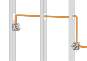 - Pasar los conduit por entremedio de los perfiles montantes o pies derechos.