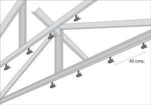 - Fijar en las vigas que formaron las cerchas los conectores TI cada 40 cm.