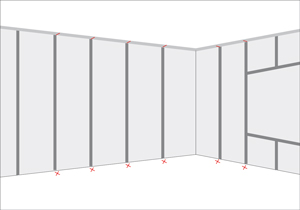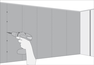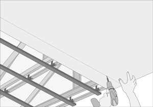 - Siguiendo las líneas de referencia fijar las planchas de yeso cartón con tornillos punta broca.