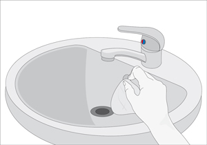 • Bloquear el rebalse con un trapo húmedo o con una esponja envuelta en una bolsa plástica.