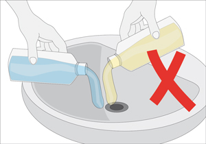 • Nunca usar limpiadores químicos si la obstrucción es total ya que no sólo no destapará su lavaplatos, sino que tendrá el problema de deshacerse del agua contaminada por los químicos.