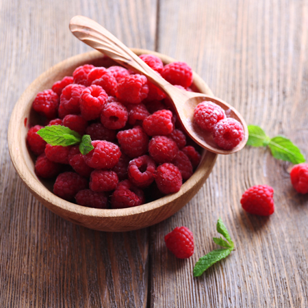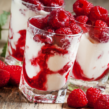 - Retirar del frío y decorar con las frambuesas enteras antes de servir.