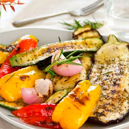 ¡Acompaña esta receta con verduras asadas! Comienza con los pimentones, ubicándolos en la parte más temperada de la parrilla. Luego, puedes seguir con los zapatillos italianos y las berenjenas. Por último, agrega espárragos y tomates.