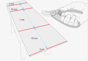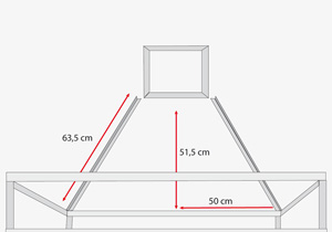 Para armar la campana hay que formar primero el dintel, haciendo 2 marcos con los trozos de 100 y 55 cm, que se unen con los cortes de 11 cm.