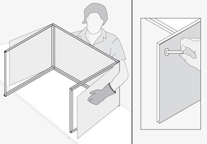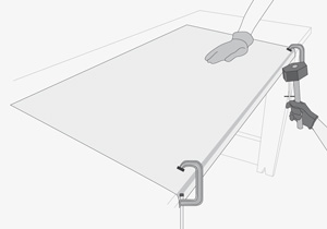 Para fijarlo se presenta en la estructura de perfiles, respetando el doblez de 2 cm como pestaña de fijación. Se perfora con broca de 4 mm y se une con remachadora pop.