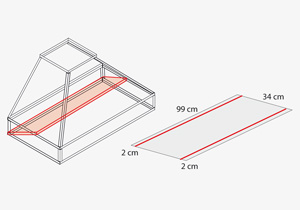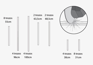 Se necesitan 8 trozos de 55 cm, 4 trozos de 96cm, 4 más de 100cm, 2 de 63,5cm, 2 de 68,5cm, 4 de 30cm y 8 de 31cm.