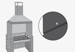 Poner la chimenea encima de la campana, haciendo calzar los marcos, y fijar con los remaches pop. Por seguridad debe ir con 2 remaches pop al centro de los costados y al frente.