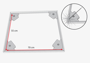 Formar 2 marcos de 31x31 cm. Unir estos marcos con los trozos de 56 cm.