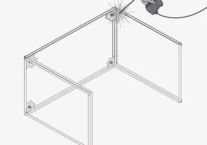 La base se forma armando 2 marcos con los ángulos de 55 y 70 cm. Para unir los trozos y poder soldar fácilmente se usan las escuadras imantadas para poder juntar los extremos.